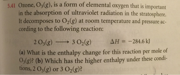 It decomposes to O2g at room temperature and pressure according to the following reaction. 203 9302 9 AH -2846 kJ Part A What is the enthalpy change for this reaction per mole of O3 9. It decomposes to O2g at room temperature and pressure according to the following reaction.